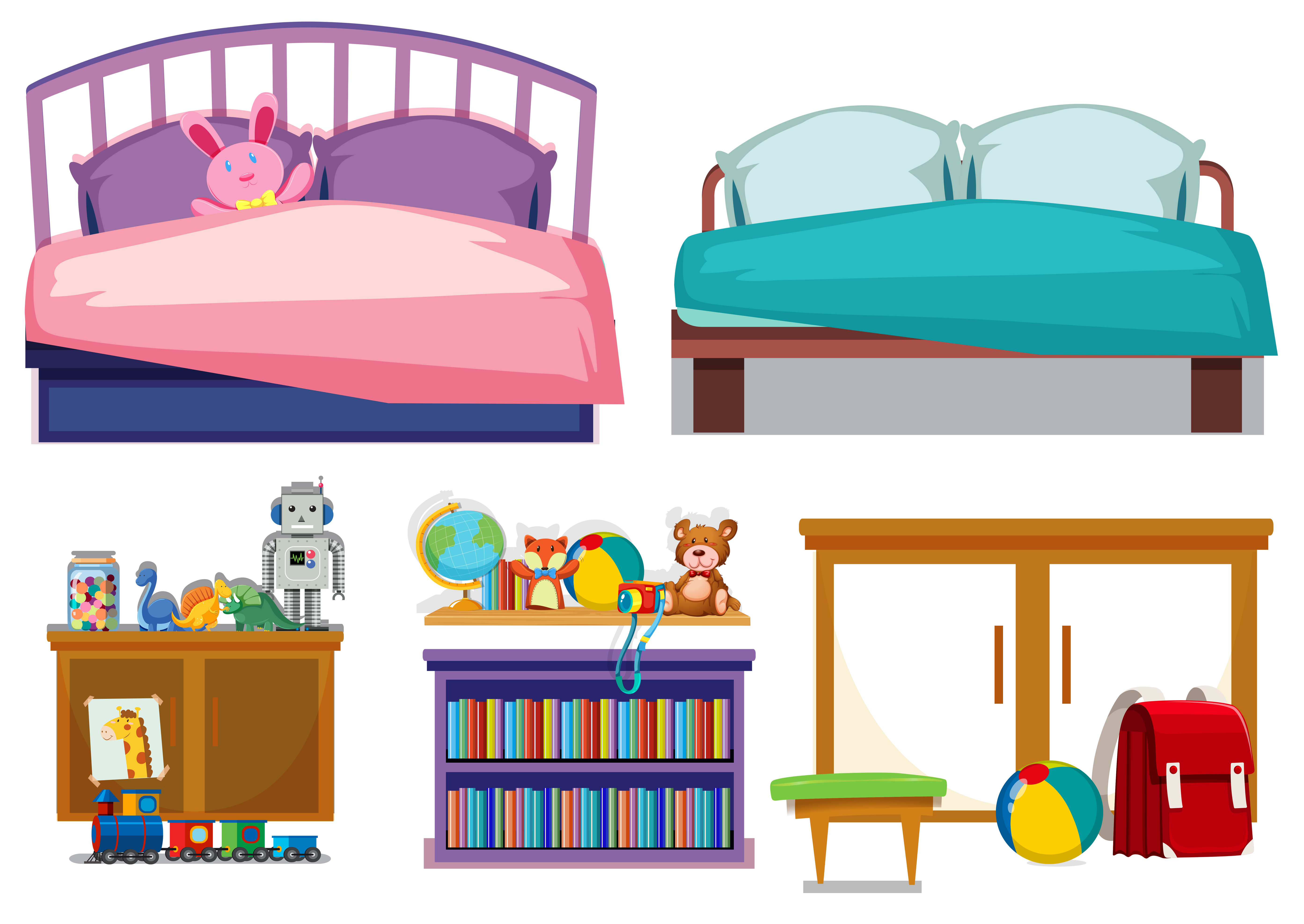 13+ Bedroom Things Clipart Background. Things in the bedroom clipart black and white. Bedroom scene with babycot and kid items download free vectors.